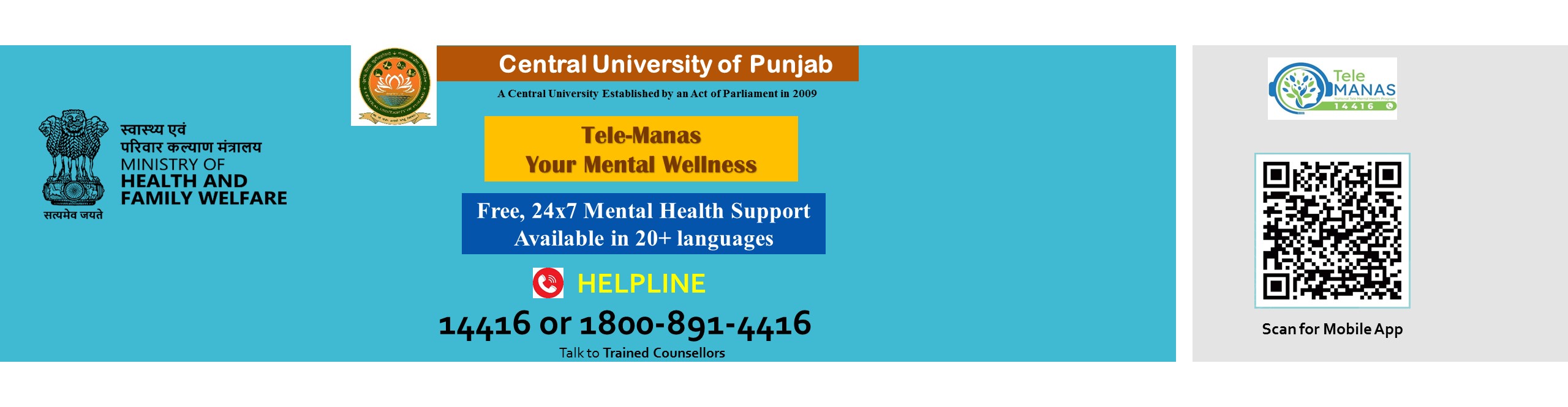 The Central University of Punjab, has been established in 2009 along with other new Central Universities by an Act of Parliament (No 25, of 2009). Central University has completed a remarkable journey of 13 years. University is accredited ‘A+’ grade in 2023 in second accreditation cycle by NAAC and has secured 95th, 87th and 84th, 81st, 100th and 83rd rank in the year 2019, 2020, 2021, 2022, 2023 and 2024 respectively in the University category of NIRF. The university has a mission of providing a wide range of instructional and research facilities.