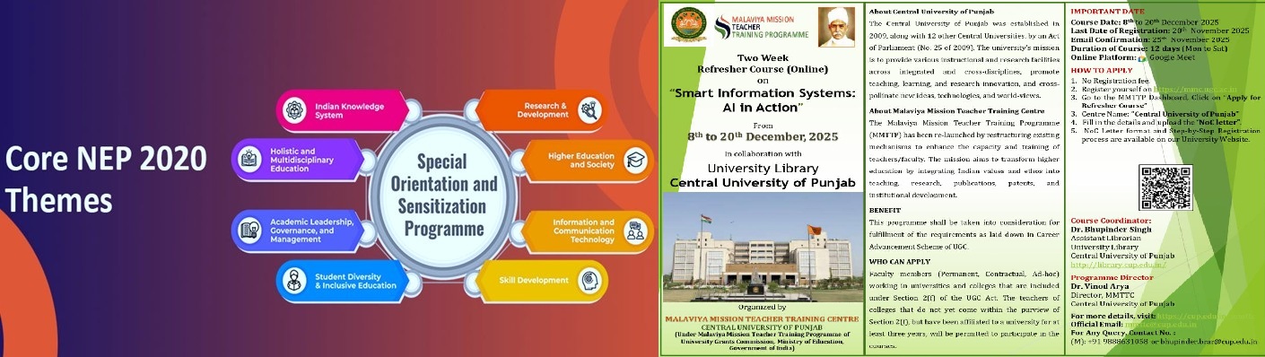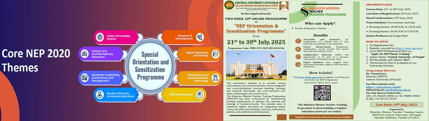 In this context, there is an urgency to upgrade and enhance the teaching and learning process, which is the aim of the Malaviya Mission Teacher Training Centre at the Central University of Punjab, Bathinda. To improve our global standing in educational performance, we must promote indigenous development through the collective action of both national and local/regional educational institutions.