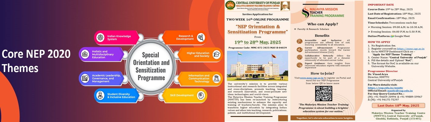 In this context, there is an urgency to upgrade and enhance the teaching and learning process, which is the aim of the Malaviya Mission Teacher Training Centre at the Central University of Punjab, Bathinda. To improve our global standing in educational performance, we must promote indigenous development through the collective action of both national and local/regional educational institutions.